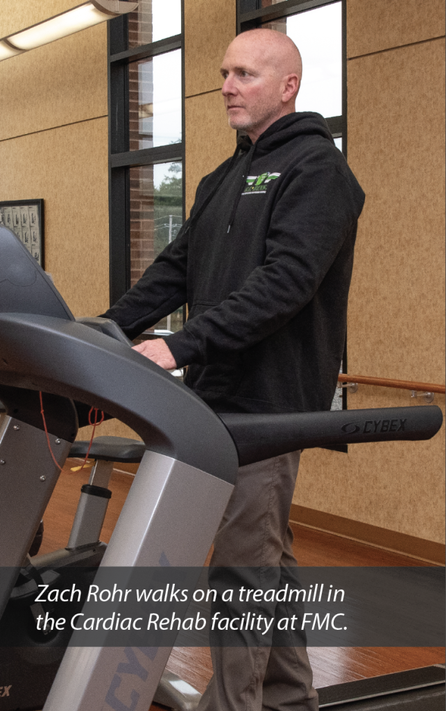 Once discharged, Zach began cardiac rehab at FMC to rebuild his strength and restore his confidence. Fitness was an important aspect of his life, but getting back on the treadmill came with a sense of dread after such a close call. Fortunately, the reassurance that came with attending supervised workout sessions surrounded by medical professionals helped Zach realize he was able to return to his active lifestyle safely and successfully. While his commitment to fitness remained intact, other aspects of his life changed almost completely.