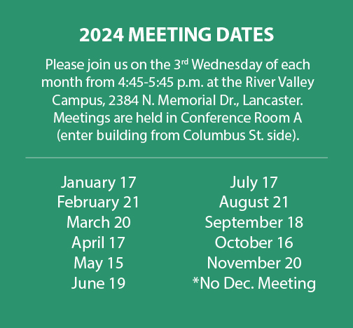 The Neuro Support Group meets on the third Wednesday of every month (except December) from 4:45-5:45 p.m. at the River Valley Campus, 2384 N. Memorial Drive. For more information, contact Maggie Freeman at 740-689-6328.